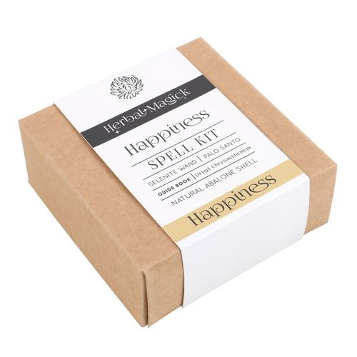Enhance happiness and promote positive energy with this Happiness Love Spell Kit. Clear negative energies and create a harmonious environment with the selenite wand and the earthy aroma of Palo Santo. The dried sunflowers are used to radiate the energy of the sun and can be placed in the iridescent natural abalone shell which is made for holding sacred herbs. Use the guide book to learn how to perform a happiness spell or ritual. All packaged with shredded paper in a recyclable gift box for someone special on their journey to contentment.