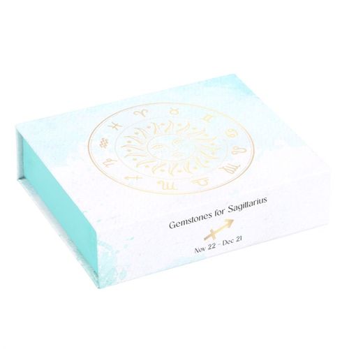 This stunning set of five crystal tumblestones are perfect for the optimistic, lively and fair-minded Sagittarius. Designed to enhance and balance the unique traits of Sagittarius individuals, by combining the harmonising power of crystals with the innate qualities of this fire sign. The set includes Blue Turquenite for relaxation, Sodalite for intuition, Amethyst for peace, Lemon Quartz for clarity and Amazonite for love and loyalty. Beautifully presented in a magnetic closure gift box with information regarding each crystal, and a velvet drawstring bag to keep the tumblestones protected.