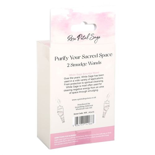 This set includes 2 bundles of dried white sage, known as smudge sticks or wands, accented by a rainbow of dried rose petals. Traditionally used for spiritual cleansing rituals, smudge sticks are essential tools in reiki, witchcraft and other sacred practices. Made in the USA.